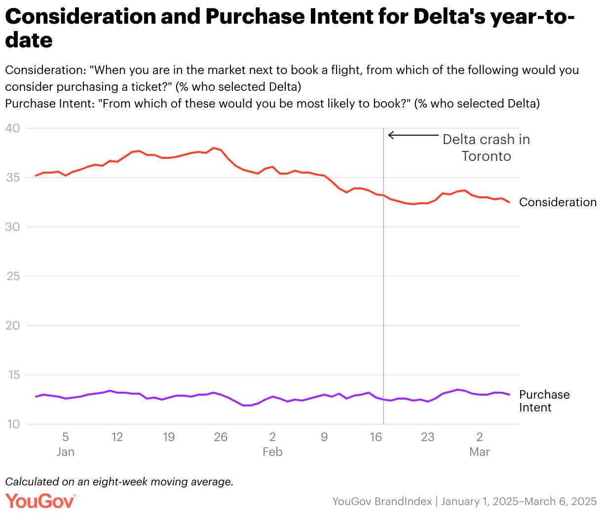Purchase Intent: "From which of these would you be most likely to book?" (% who selected Delta)