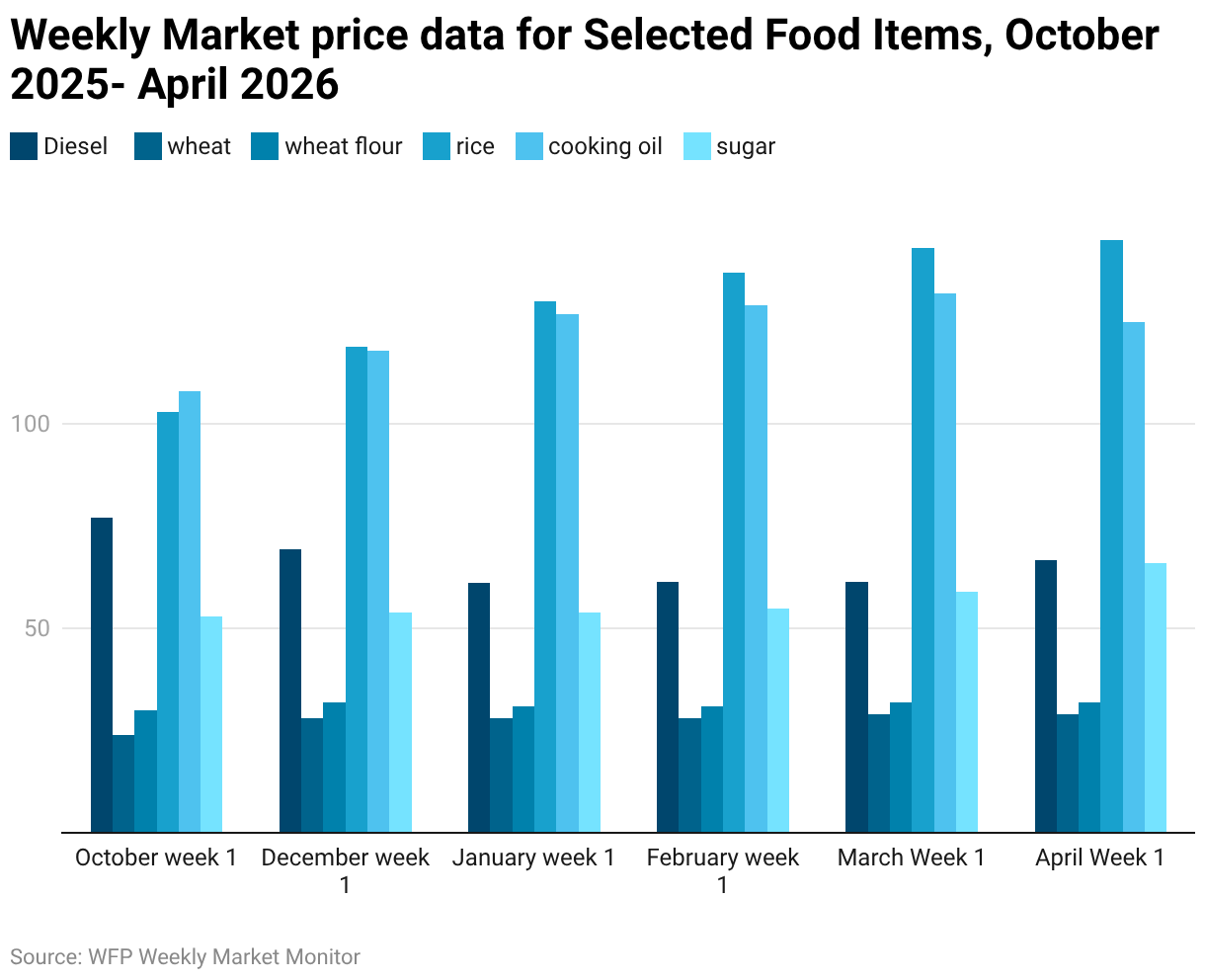 Weekly Market price data for Selected Food Items, October 2025- April 2026