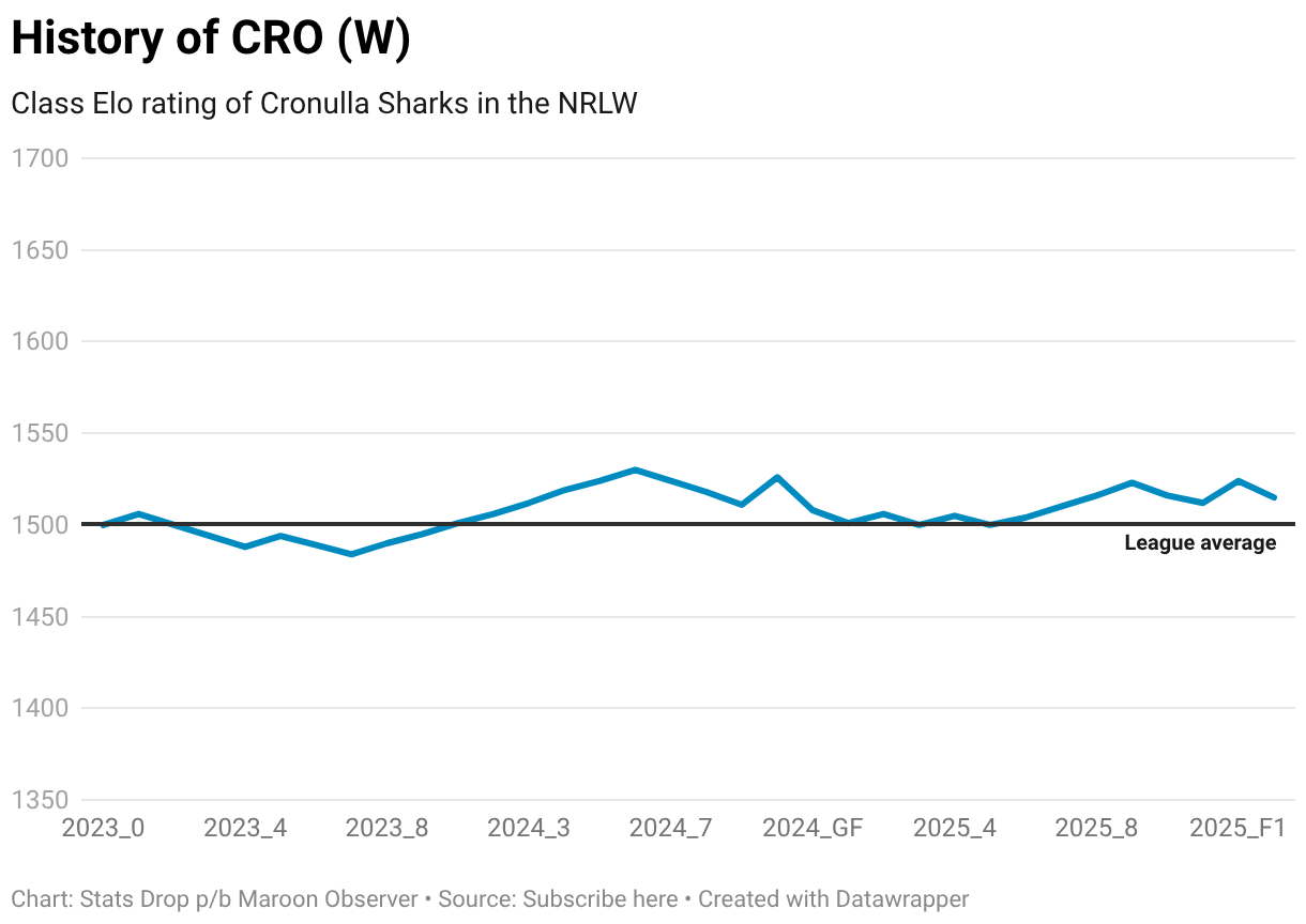 Class Elo rating of Cronulla Sharks in the NRLW