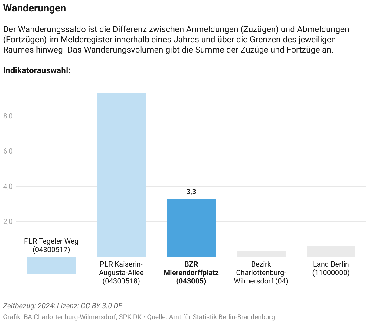 Der Wanderungssaldo ist die Differenz zwischen Anmeldungen (Zuzügen) und Abmeldungen (Fortzügen) im Melderegister innerhalb eines Jahres und über die Grenzen des jeweiligen Raumes hinweg. Das Wanderungsvolumen gibt die Summe der Zuzüge und Fortzüge an.