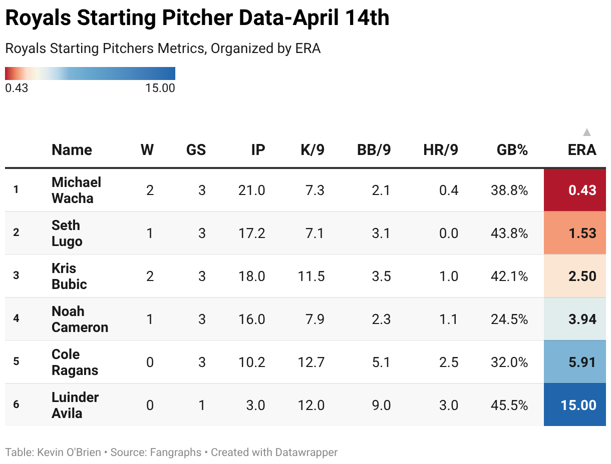 Royals Starting Pitchers Metrics, Organized by ERA