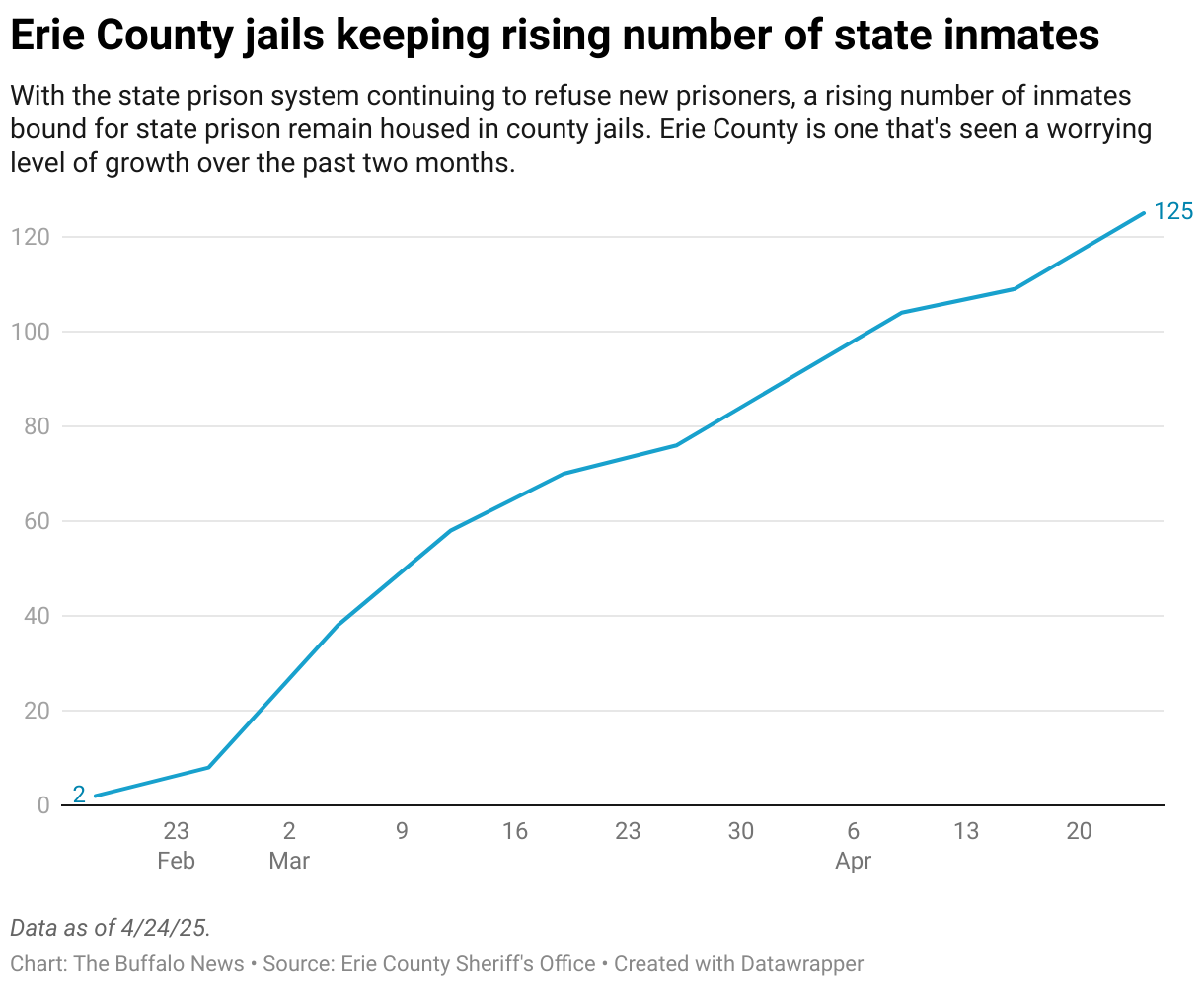 With the state prison system continuing to refuse new prisoners, a rising number of inmates bound for state prison remain housed in county jails. Erie County is one that's seen a worrying level of growth over the past two months.