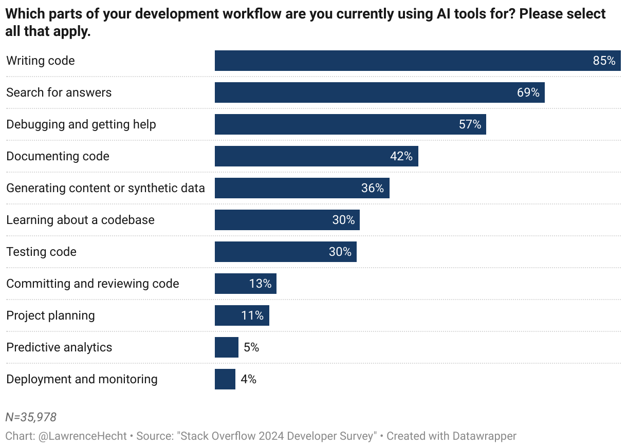 Which parts of your development workflow are you currently using AI tools for? Please select all that apply.