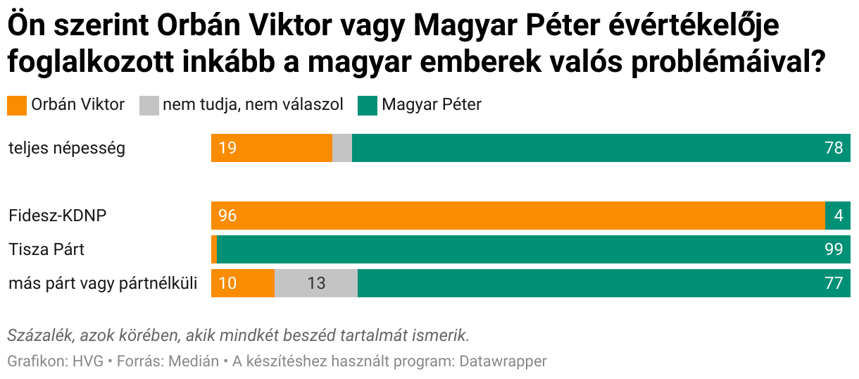 Ön szerint Orbán Viktor vagy Magyar Péter évértékelője foglalkozott inkább a magyar emberek valós problémáival?