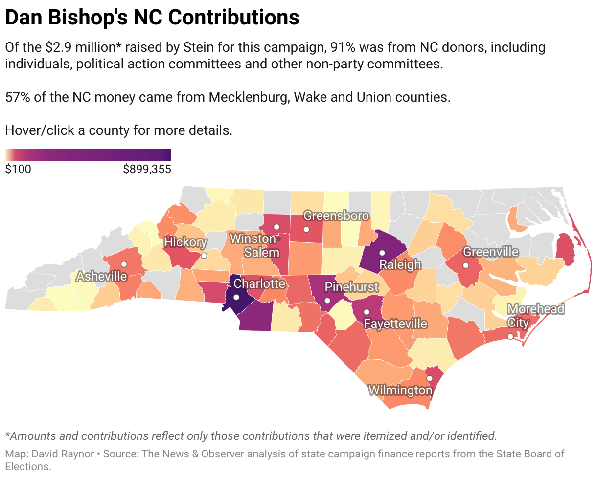 57% of the NC money came from Mecklenburg, Wake and Union counties.