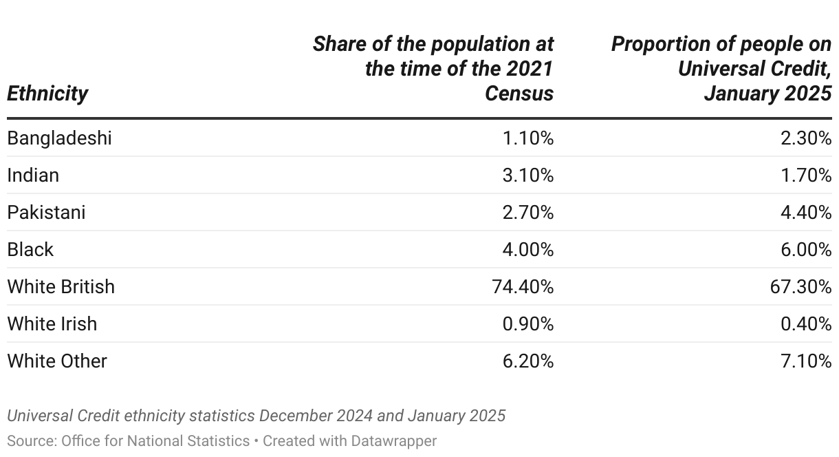 Universal Credit ethnicity statistics December 2024 and January 2025
