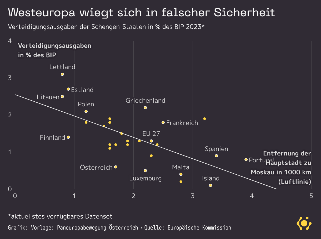 Verteidigungsausgaben der Schengen-Staaten in % des BIP 2023*