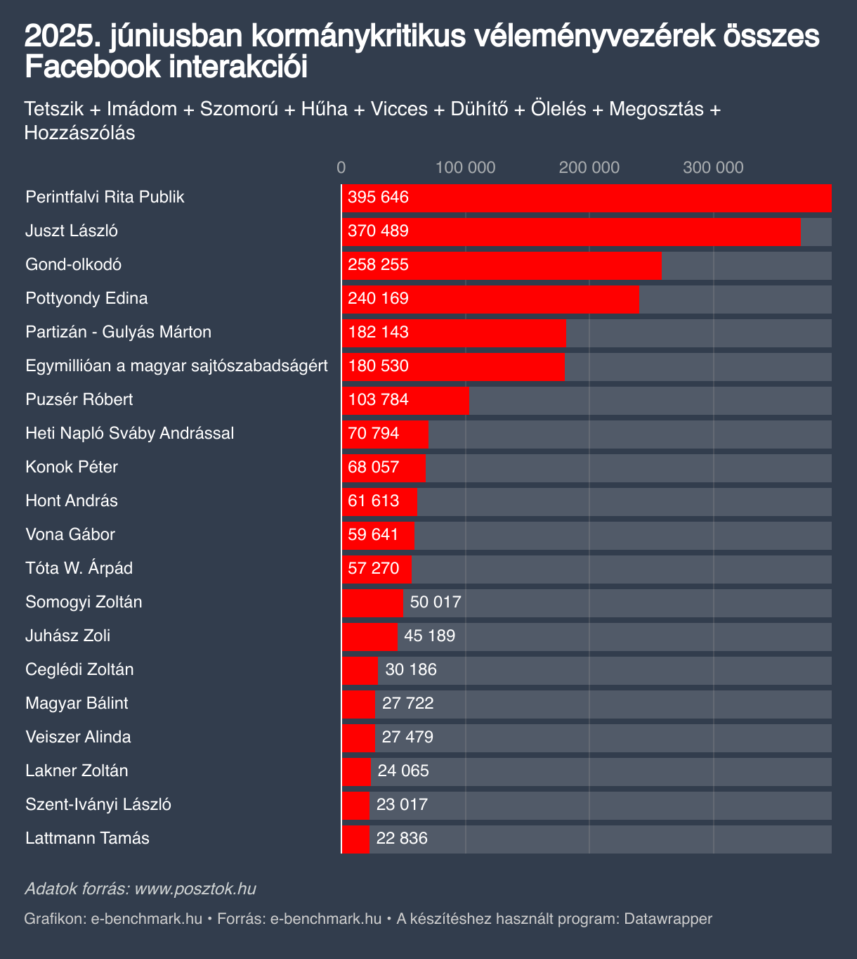 2025. júniusban kormánykritikus véleményvezérek összes Facebook interakciói