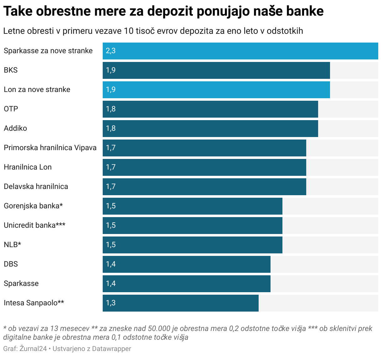 Letne obresti v primeru vezave 10 tisoč evrov depozita za eno leto v odstotkih