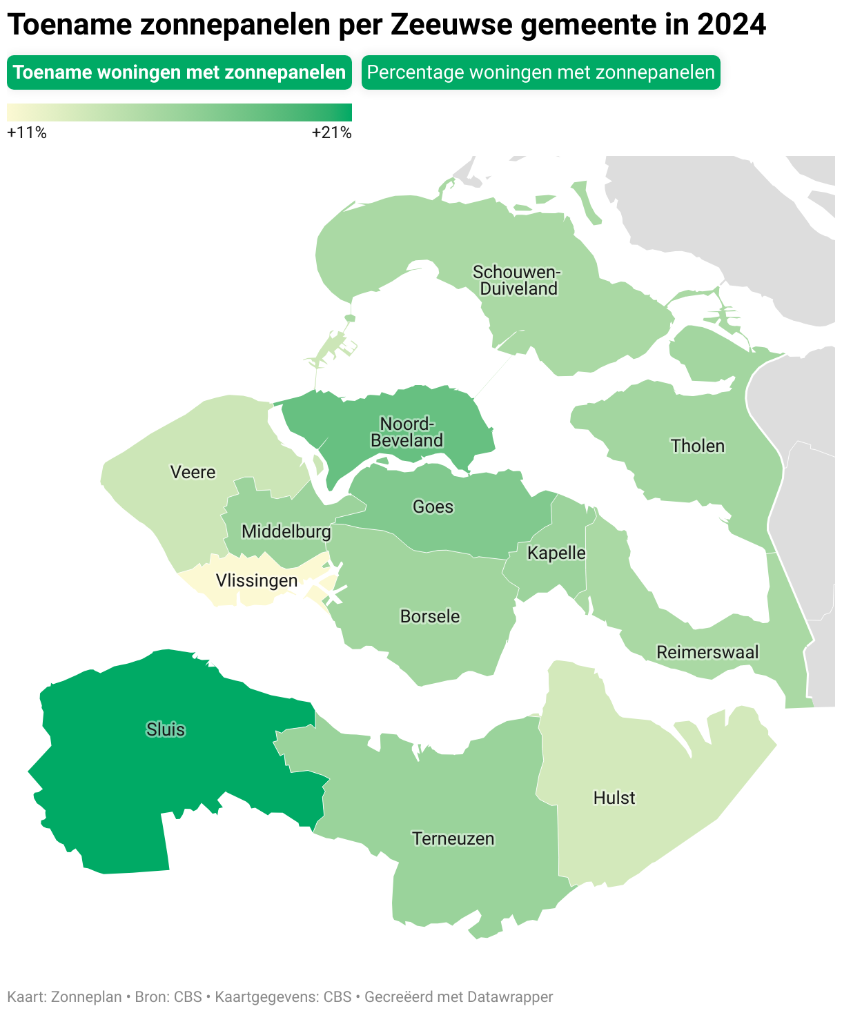 Toename woningen met zonnepanelen Percentage woningen met zonnepanelen