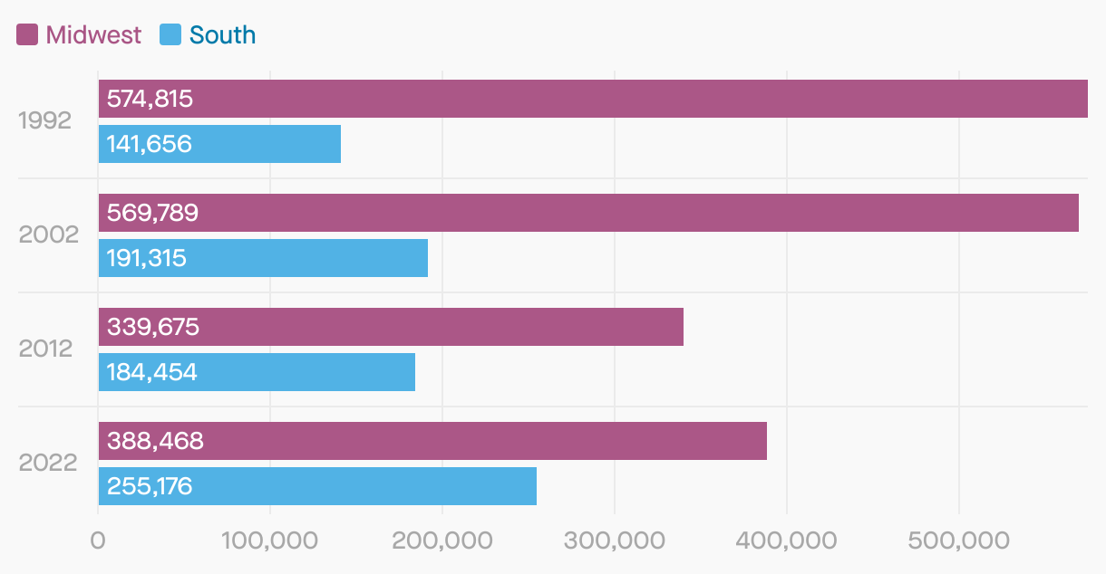 US automotive employment in South gains on Midwest