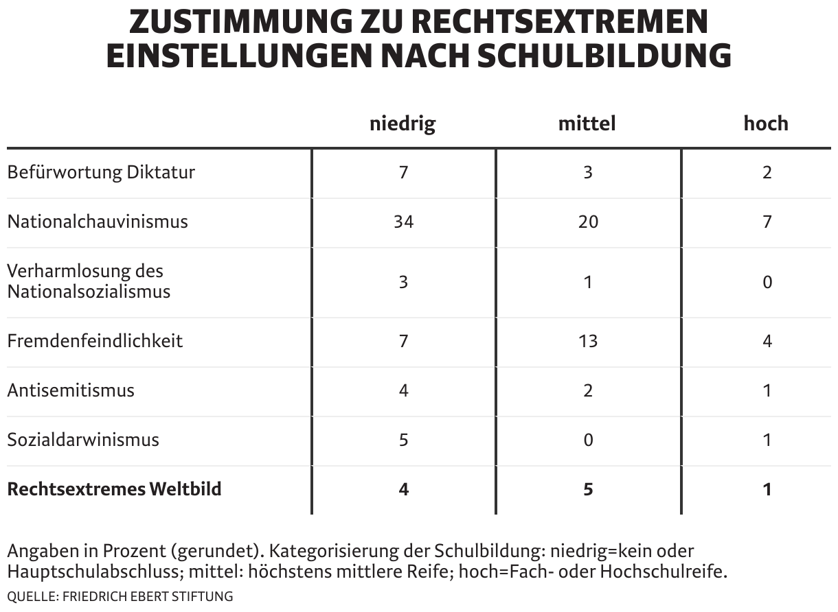 Zustimmung zu rechtsextremen Einstellungen nach Schulbildung