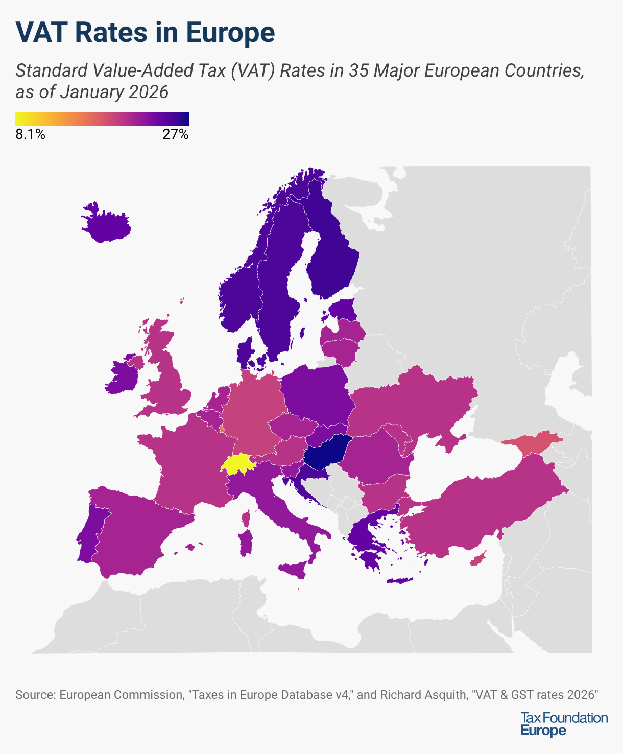 Standard Value-Added Tax (VAT) Rates in 35 Major European Countries, as of January 2026