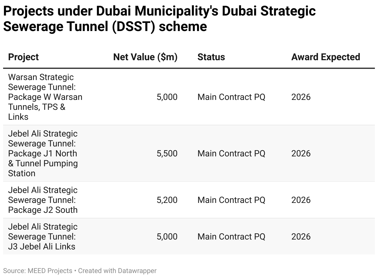 Projects under Dubai Municipality's Dubai Strategic Sewerage Tunnel (DSST) scheme