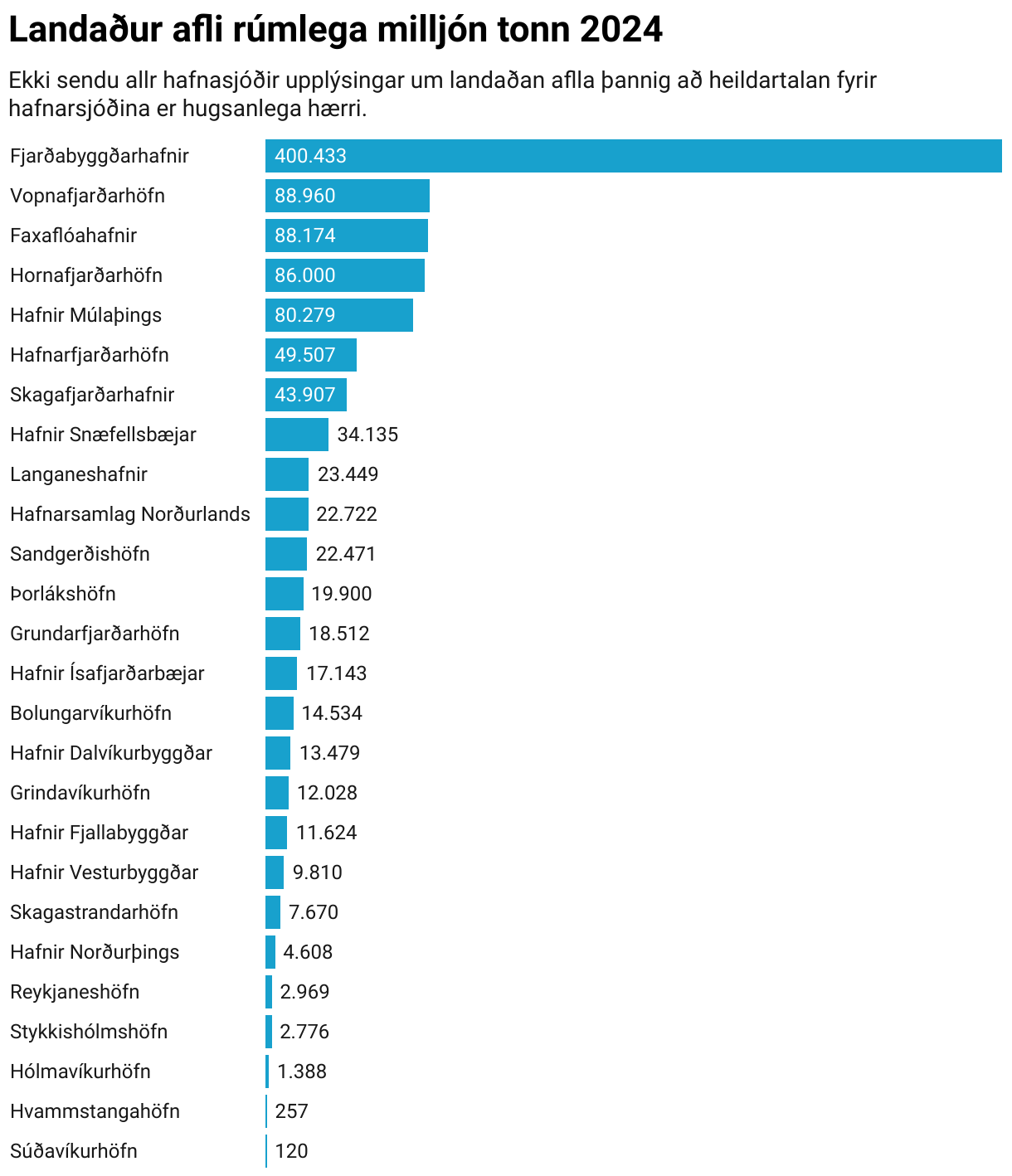 Ekki sendu allr hafnasjóðir upplýsingar um landaðan aflla þannig að heildartalan fyrir hafnarsjóðina er hugsanlega hærri.