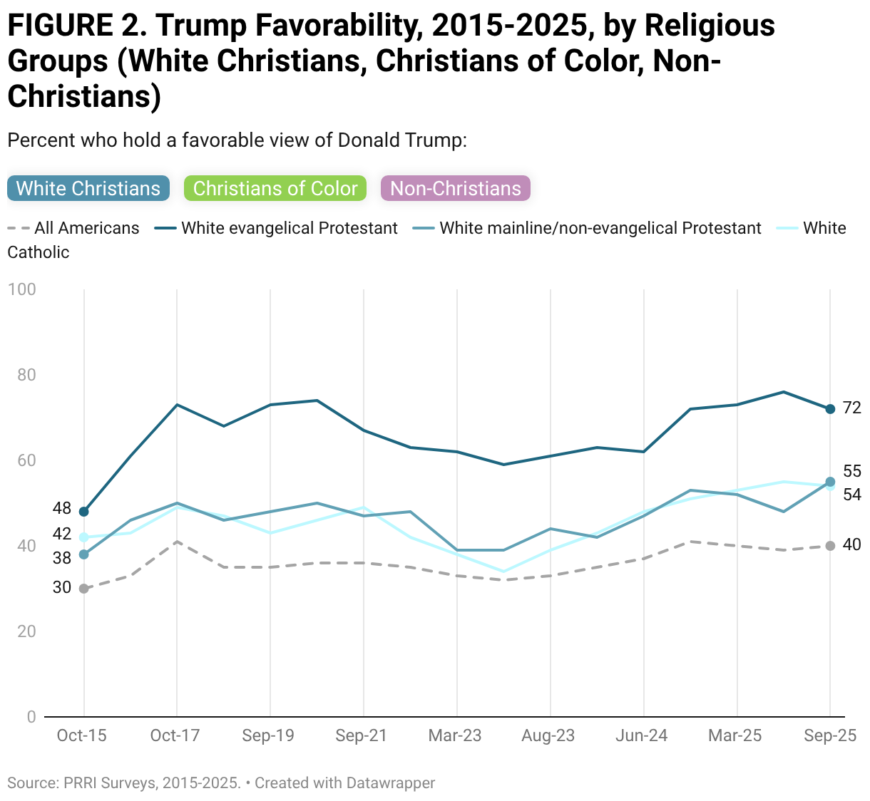 Percent who hold a favorable view of Donald Trump: White Christians Christians of Color Non-Christians