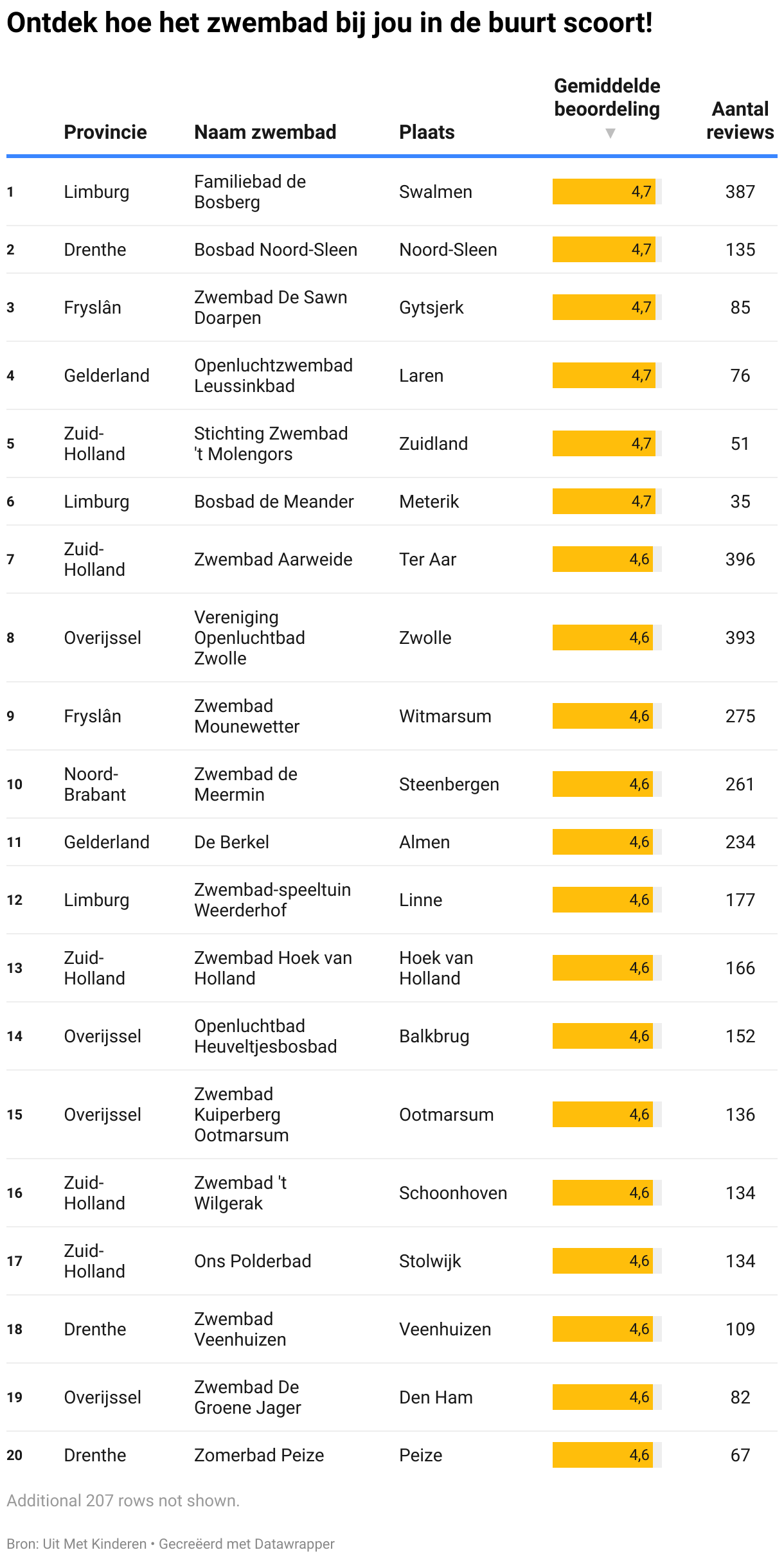 Ontdek hoe het zwembad bij jou in de buurt scoort!