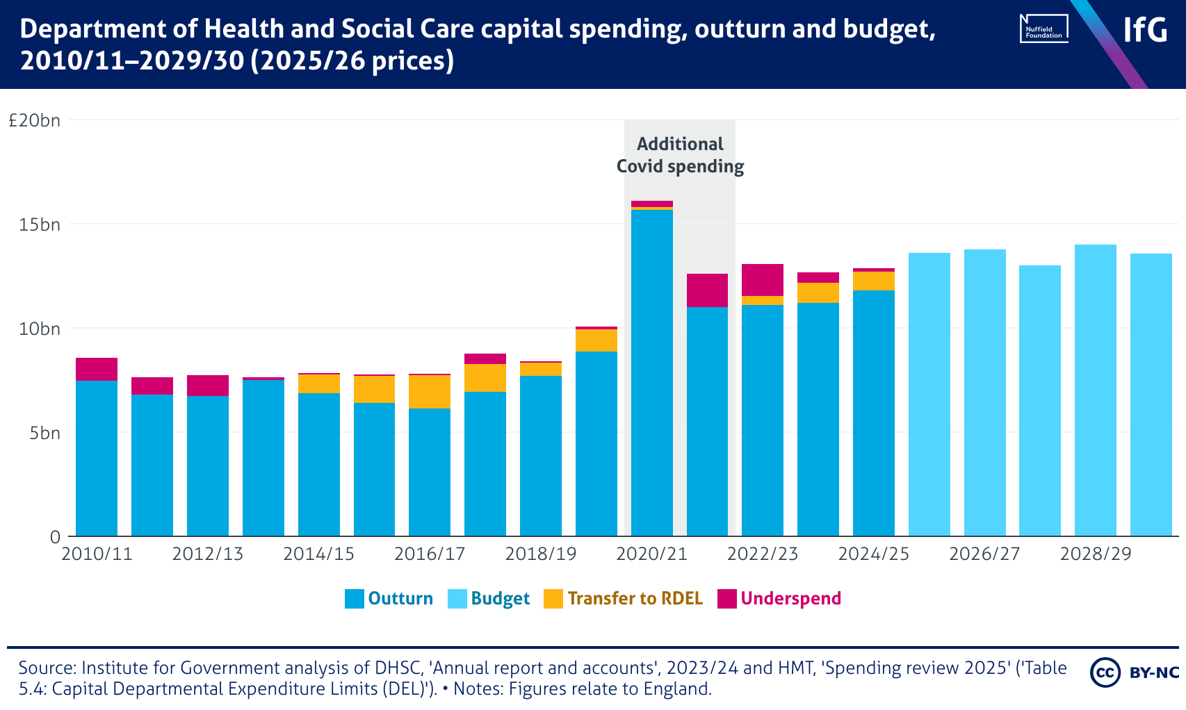 Department of Health and Social Care capital spending, outturn and budget, 2010/11–2029/30 (2025/26 prices)