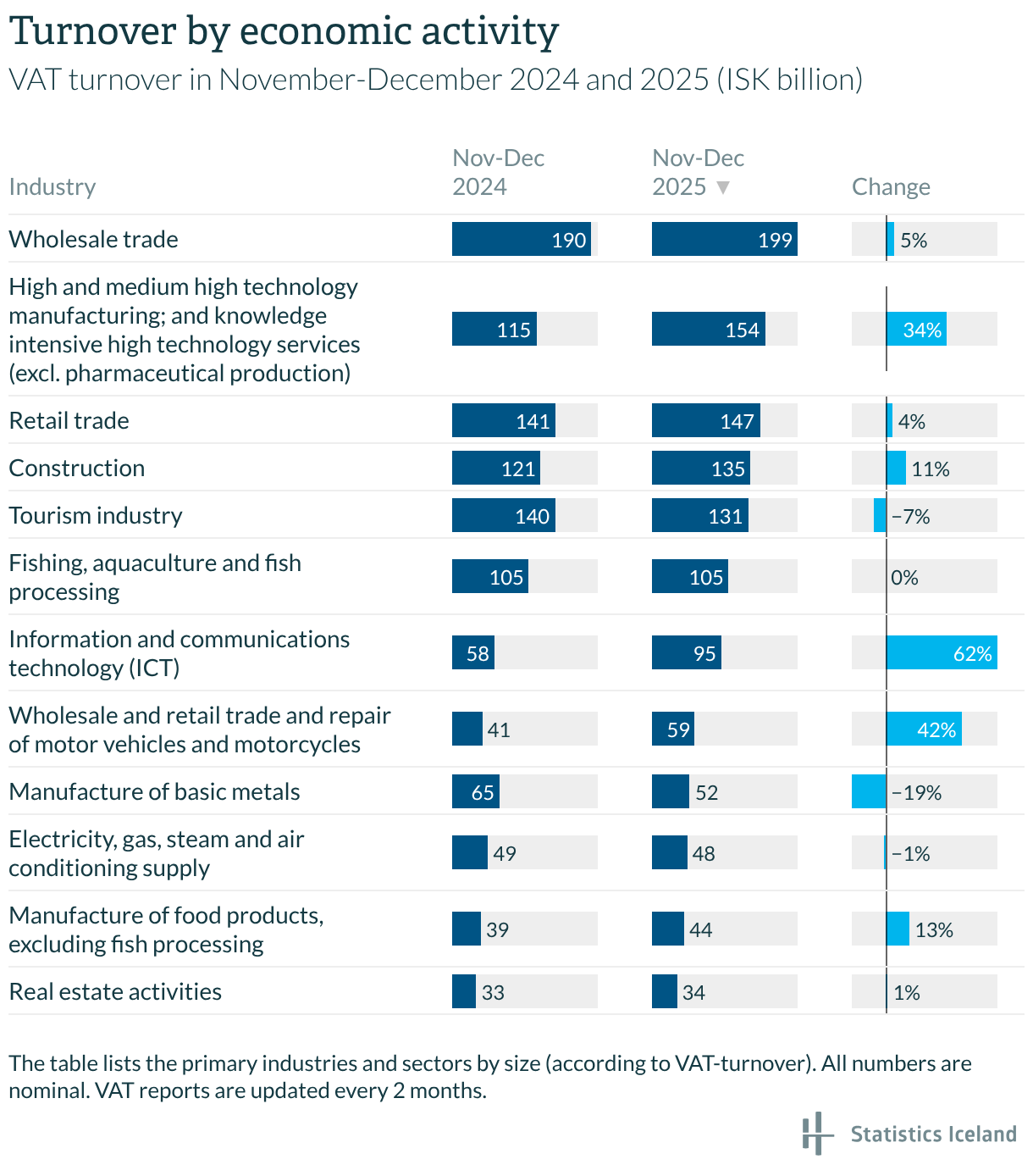 VAT turnover in November-December 2024 and 2025 (ISK billion)