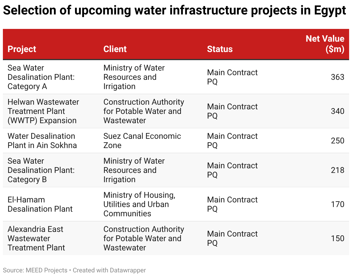 Selection of upcoming water infrastructure projects in Egypt