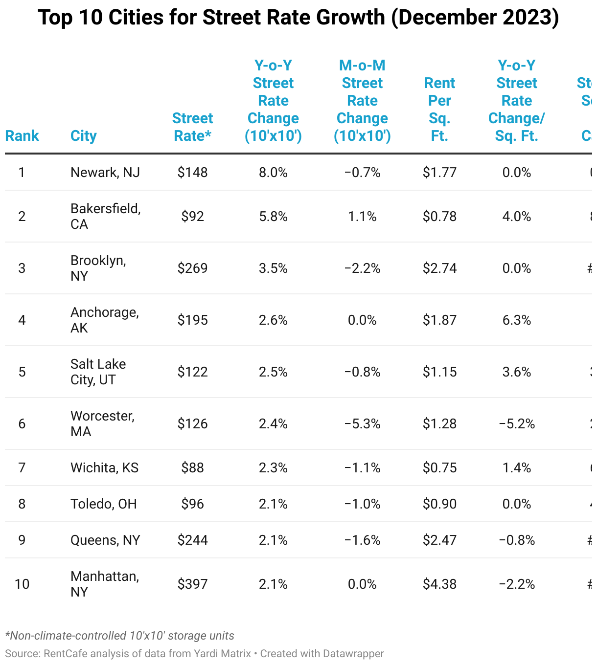 Top 10 Cities for Street Rate Growth (December 2023)