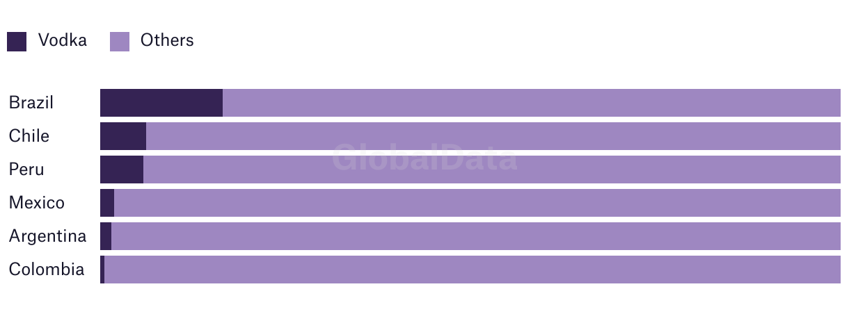 Market share of vodka vs other spirits in the top Latin American markets (million litres) - 2022
