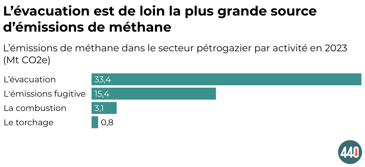 L’émissions de méthane dans le secteur pétrogazier par activité en 2023 (Mt CO2e)