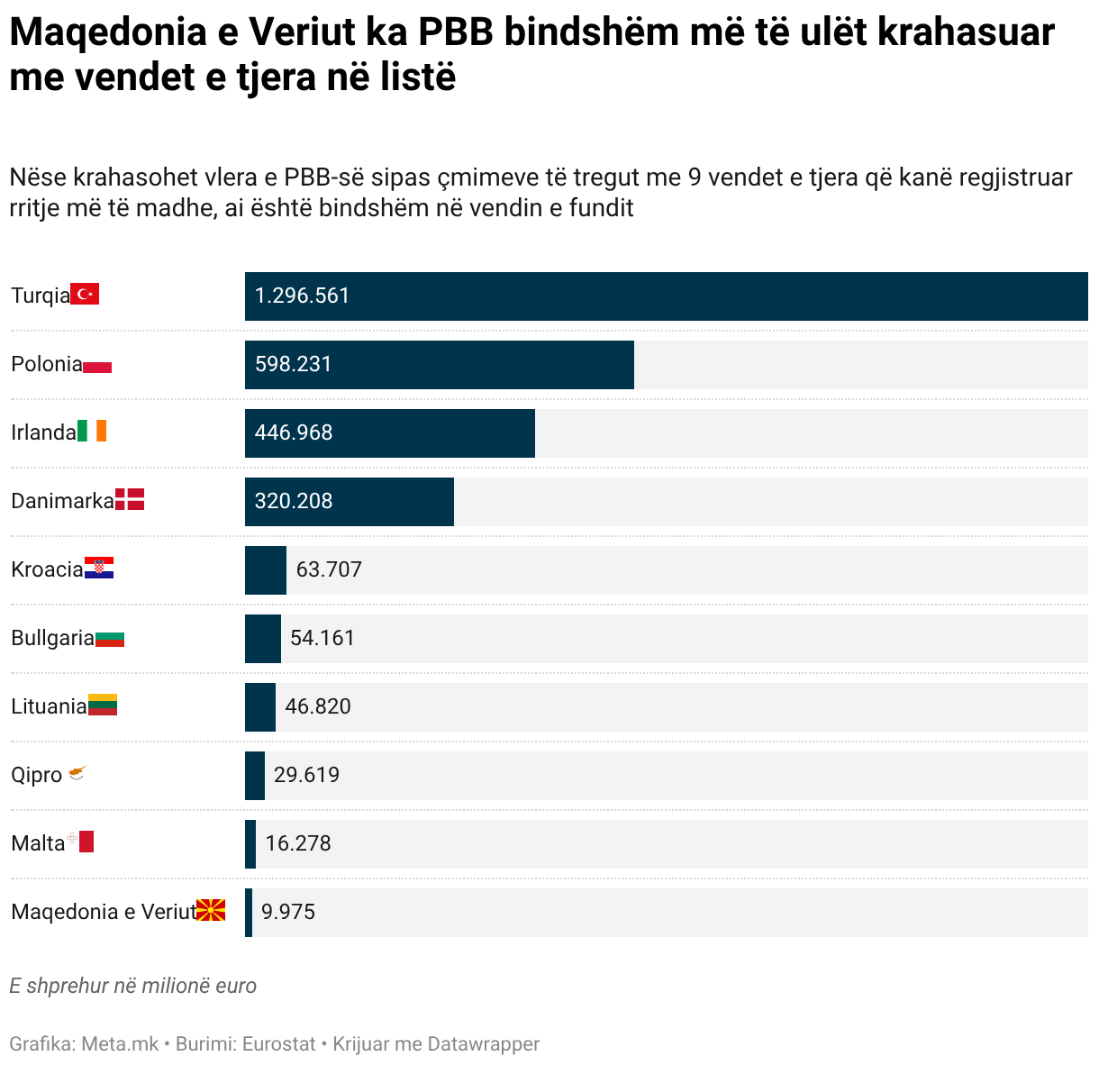 Maqedonia e Veriut ka PBB bindshëm më të ulët krahasuar me vendet e tjera në listë