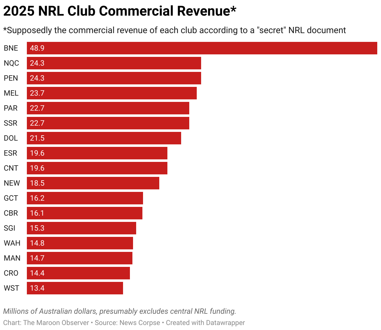 *Supposedly the commercial revenue of each club according to a "secret" NRL document