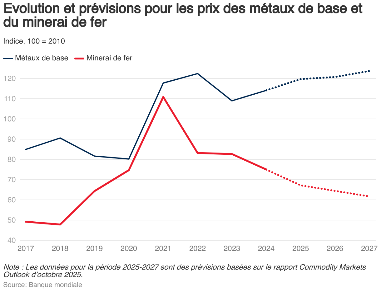 Évolution et prévisions pour les prix des métaux de base et du minerai de fer