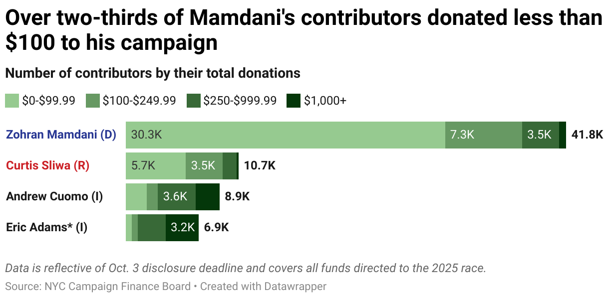 Number of contributors by their total donations