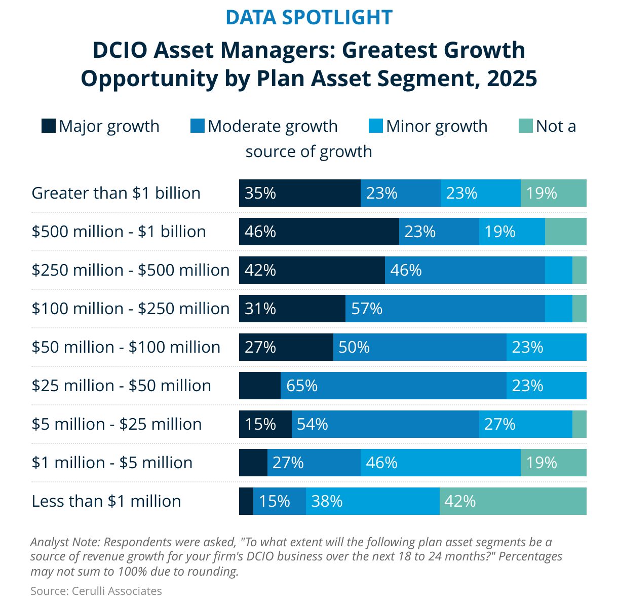 DCIO Asset Managers: Greatest Growth Opportunity by Plan Asset Segment, 2025