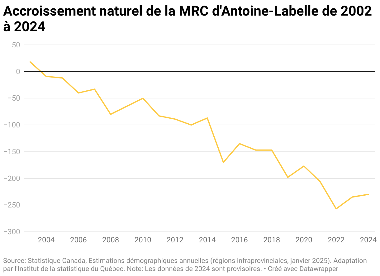 Accroissement naturel de la MRC d'Antoine-Labelle de 2002 à 2024