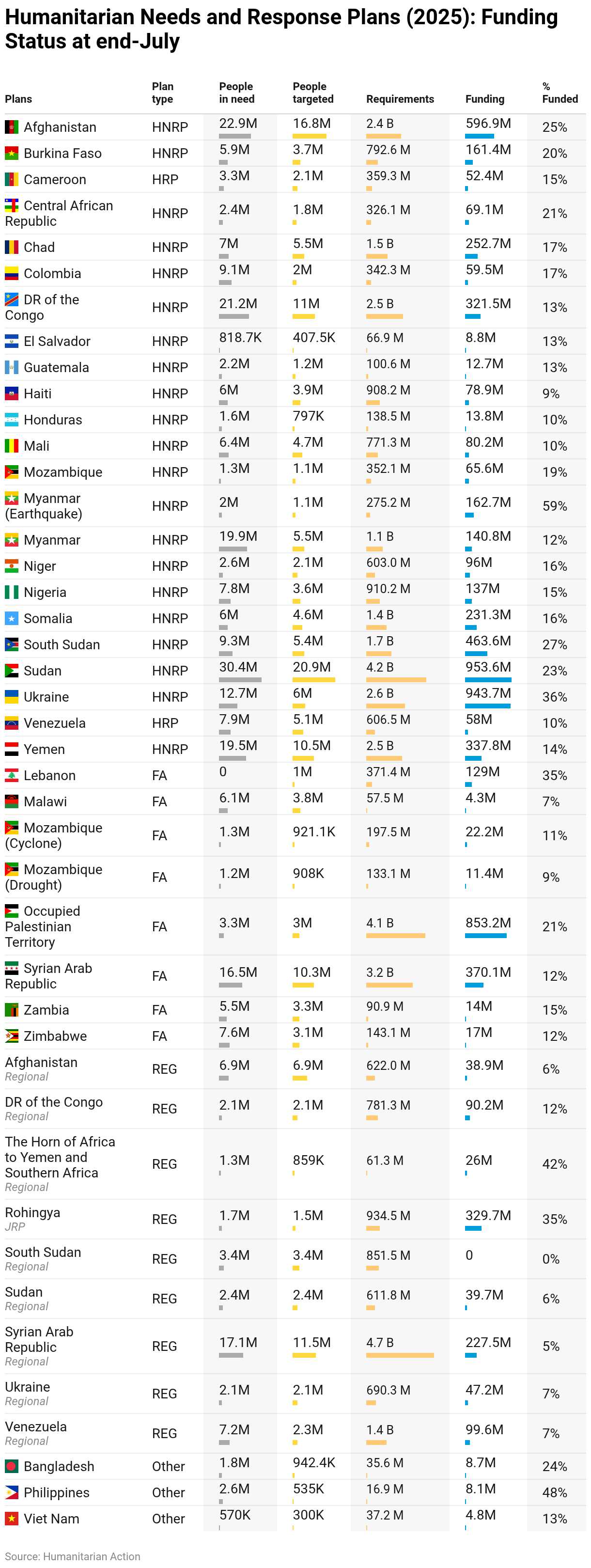 Humanitarian Needs and Response Plans (2025): Funding Status at end-July