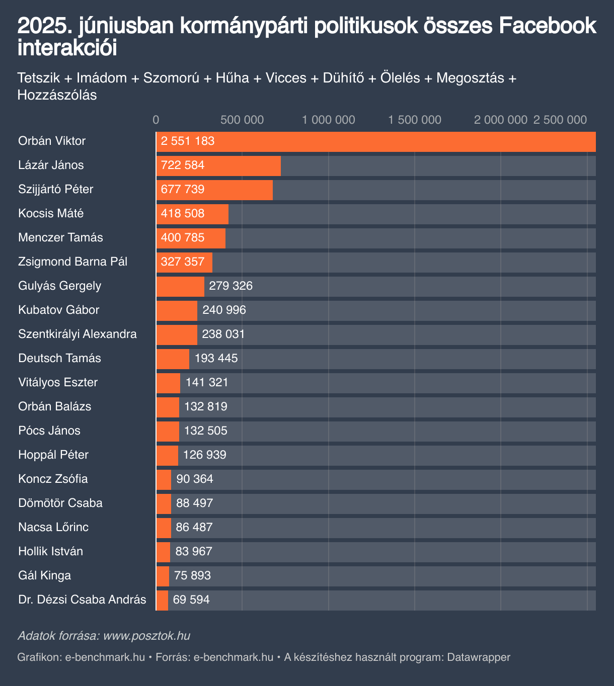 2025. júniusban kormánypárti politikusok összes Facebook interakciói