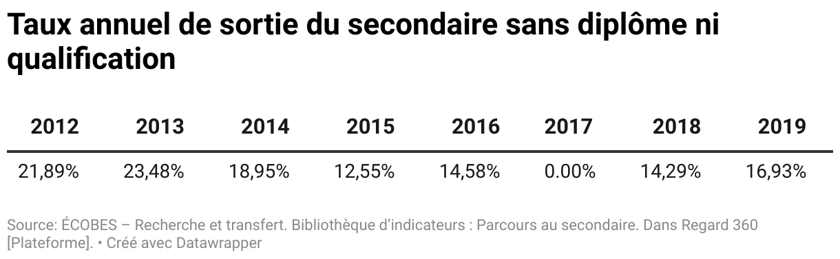 Taux annuel de sortie du secondaire sans diplôme ni qualification