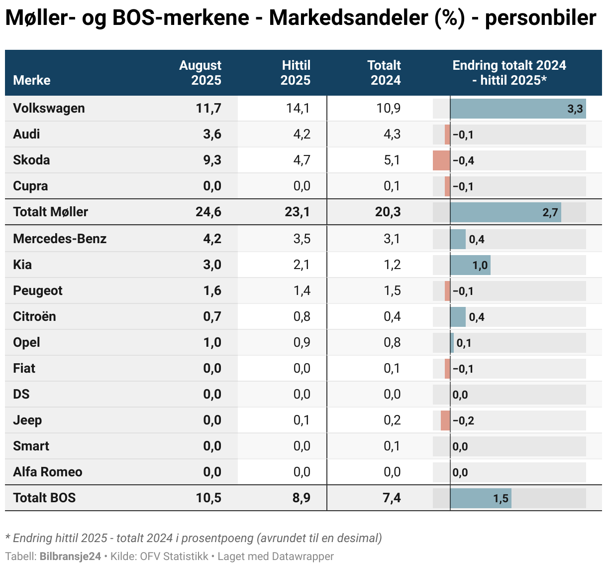 Møller- og BOS-merkene - Markedsandeler (%) - personbiler