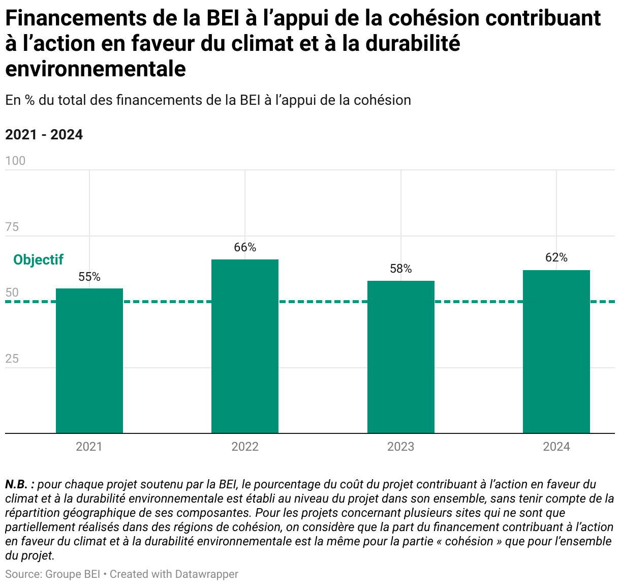 En % du total des financements de la BEI à l’appui de la cohésion 2021 - 2024