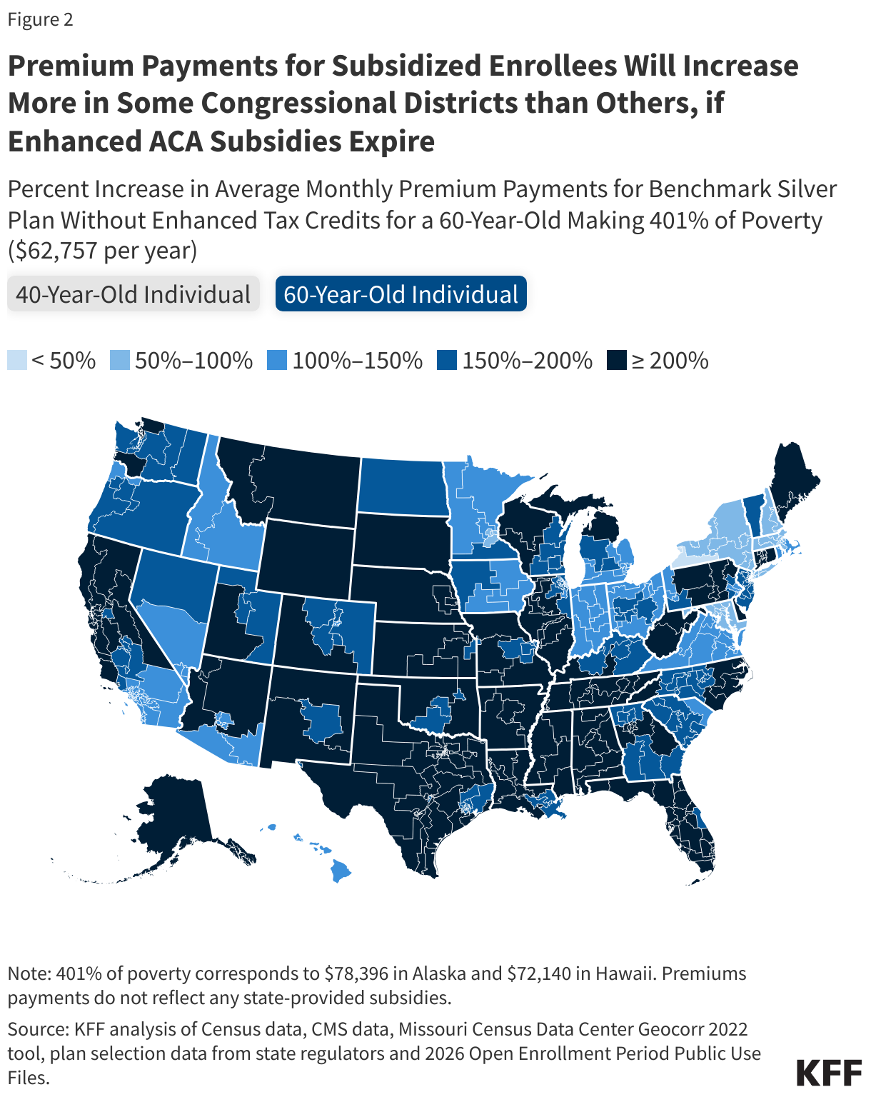 Premium Payments for Subsidized Enrollees Will Increase More in Some Congressional Districts than Others, if Enhanced ACA Subsidies Expire