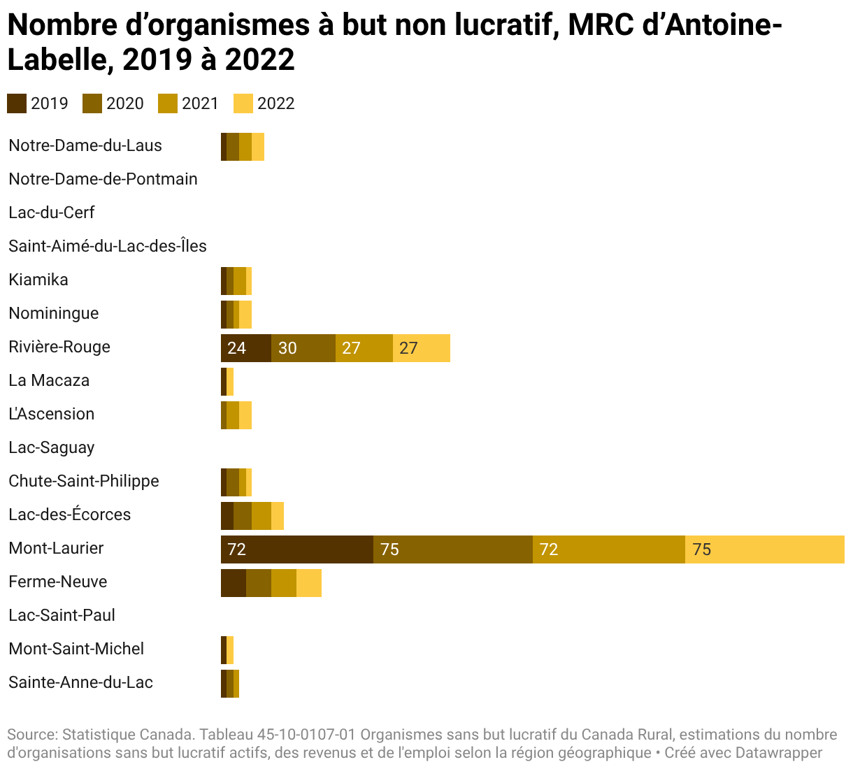 Nombre d’organismes à but non lucratif, MRC d’Antoine-Labelle, 2019 à 2022