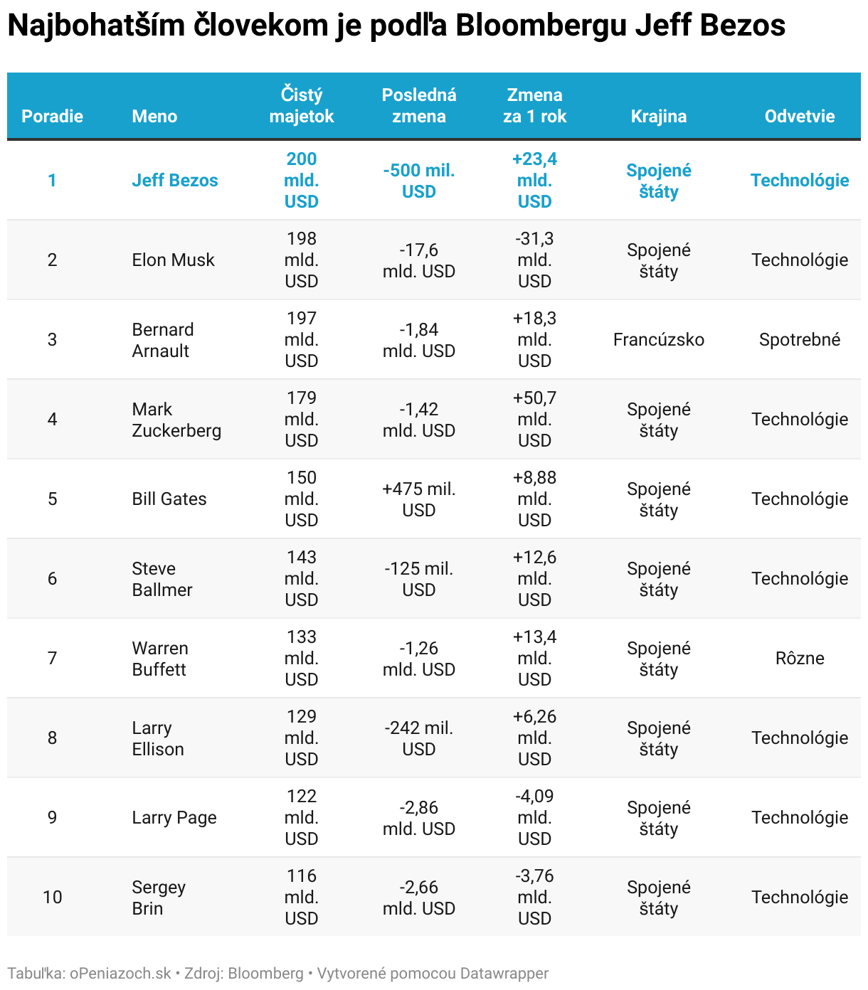 Najbohatším človekom je podľa Bloombergu Jeff Bezos