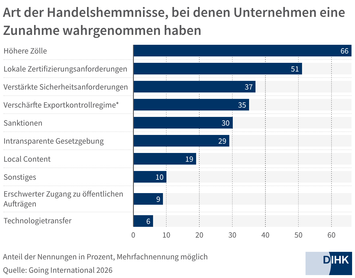 Art der Handelshemmnisse, bei denen Unternehmen eine Zunahme wahrgenommen haben