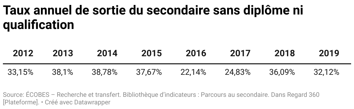 Taux annuel de sortie du secondaire sans diplôme ni qualification