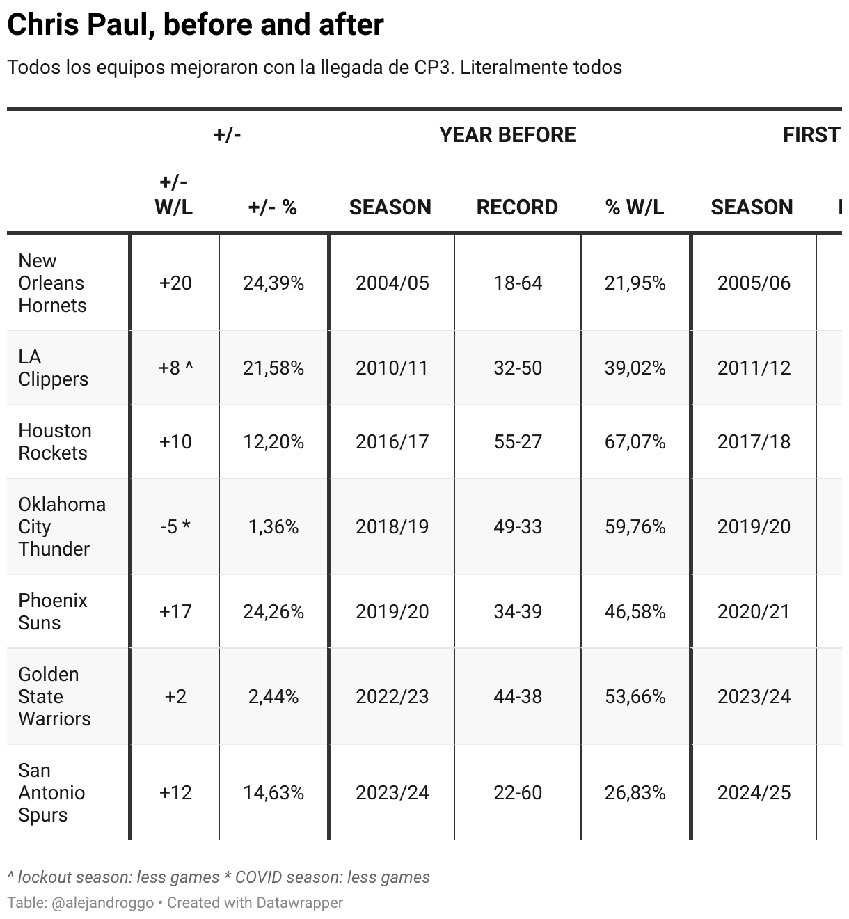 Todos los equipos mejoraron con la llegada de CP3. Literalmente todos