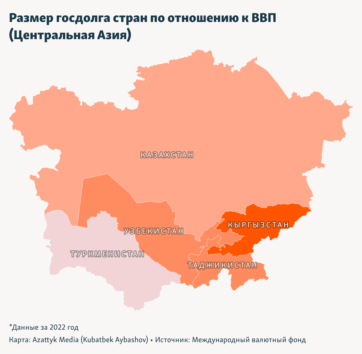 Размер госдолга стран по отношению к ВВП (Центральная Азия)
