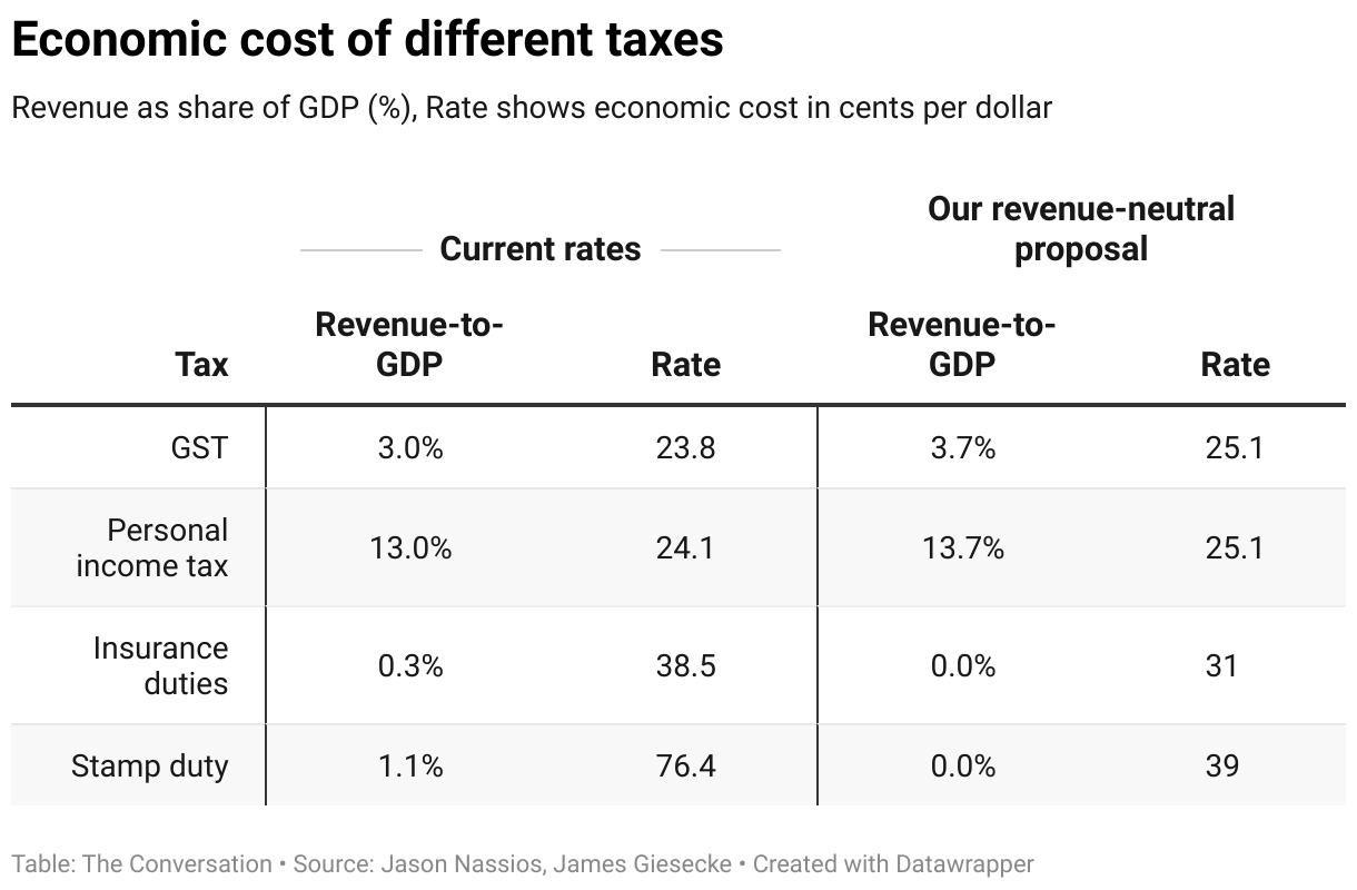 Revenue as share of GDP (%), Rate shows economic cost in cents per dollar