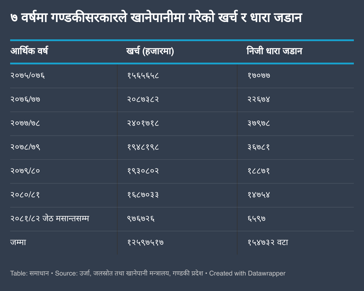 ७ वर्षमा गण्डकीसरकारले खानेपानीमा गरेको खर्च र धारा जडान
