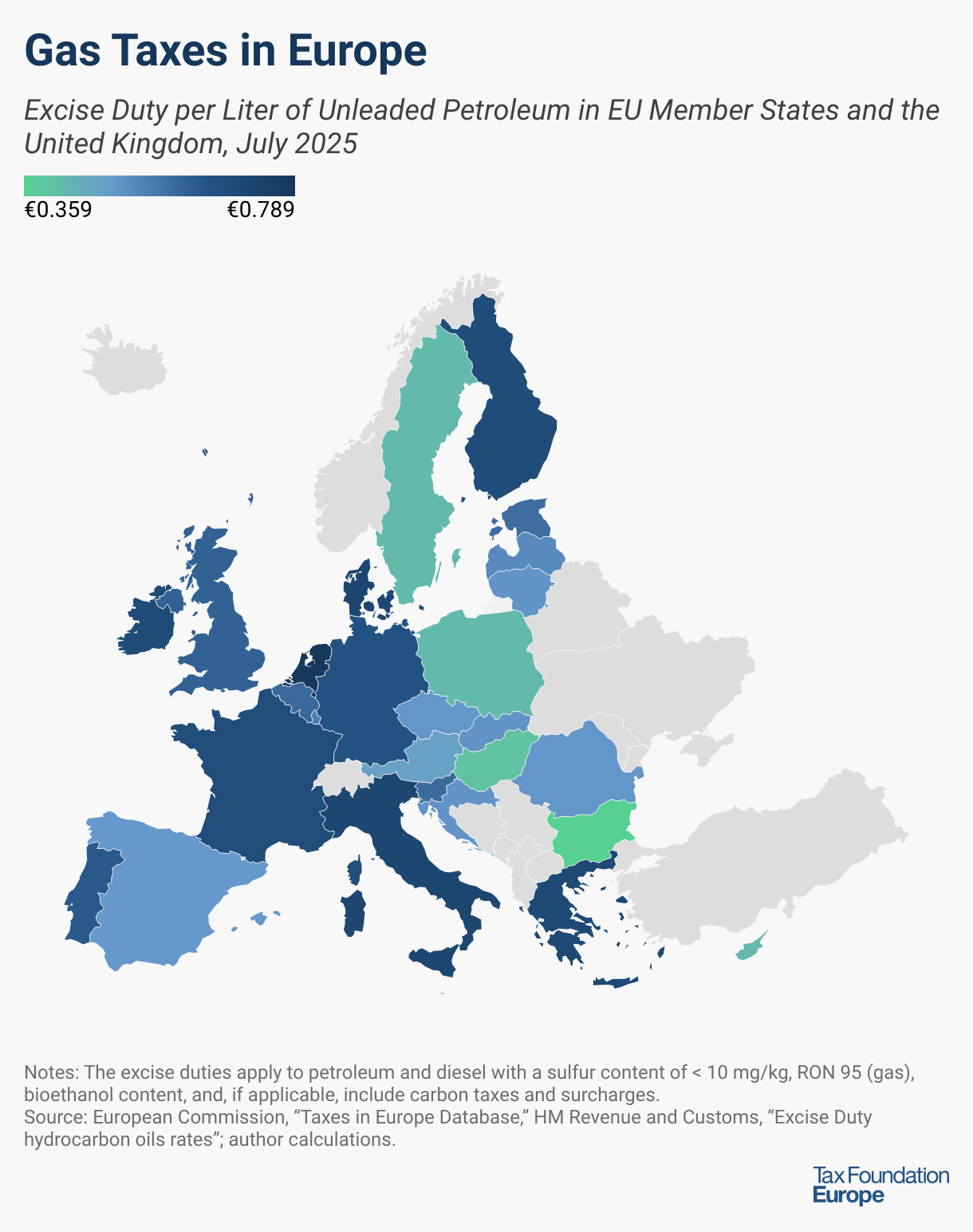 Excise Duty per Liter of Unleaded Petroleum in EU Member States and the United Kingdom, July 2025