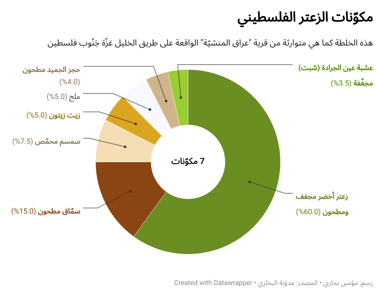 هذه الخلطة كما هي متوارثة من قرية "عراق المنشيّة" الواقعة على طريق الخليل غزّة جَنُوب فلسطين