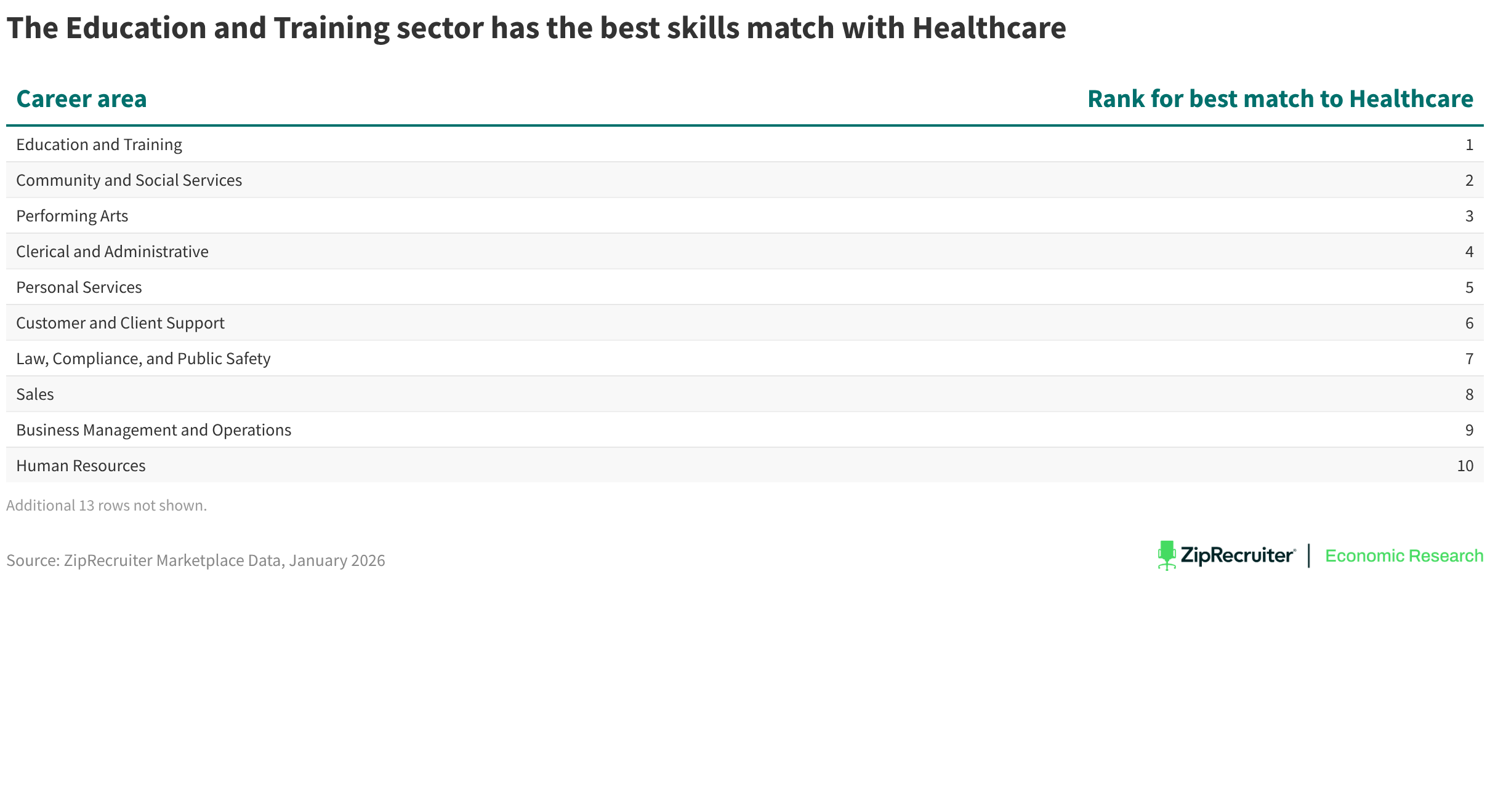 The Education and Training sector has the best skills match with Healthcare